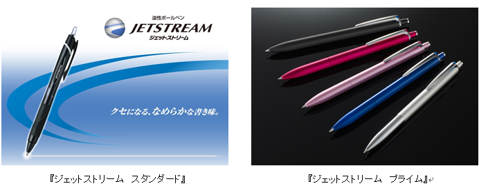 発売以来、軸機能・ボール径・インク色の様々な新機能アイテムを追加し、社会人男女を中心とした様々なお客様からご好評いただいております。高価格帯シリーズ『ジェットストリーム プライム』、タッチペン搭載モデル『ジェットストリーム スタイラス』など、幅広い機能のアイテムをラインアップし、シリーズ世界販売本数は、年間約1億本となっています。