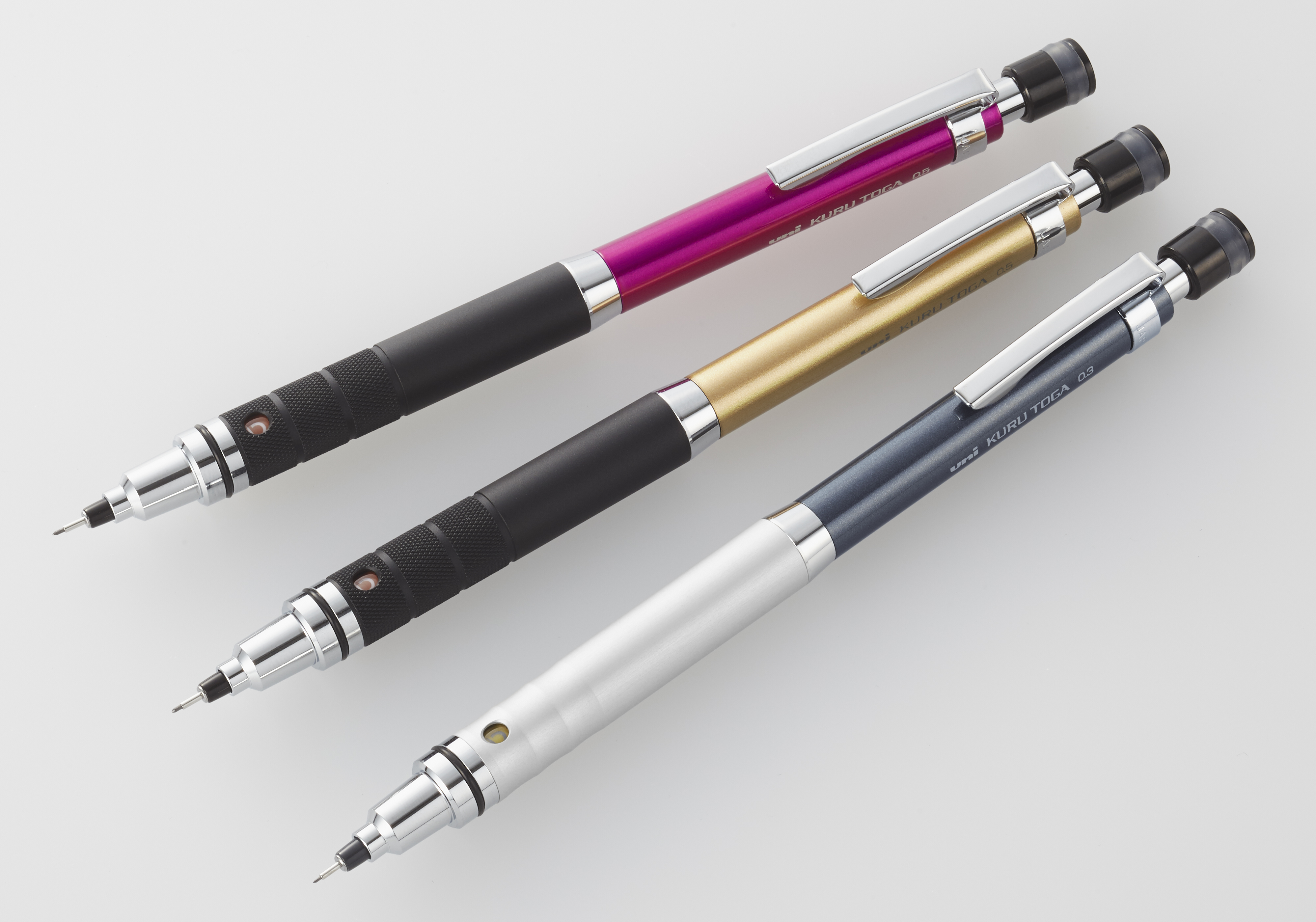 三菱鉛筆株式会社(本社:東京都品川区、社長:数原英一郎)は、今年、発売から10周年を迎えた“芯が回ってトガり続けるシャープ”『クルトガ』から、『クルトガ ローレットモデル』(本体価格1,000円+消費税、芯径:0.5mm、全2種)と『クルトガ ハイグレードモデル』(本体価格1,000円+消費税、芯径: 0.3mm)の限定色を数量限定で12月21日(金)に発売いたします。