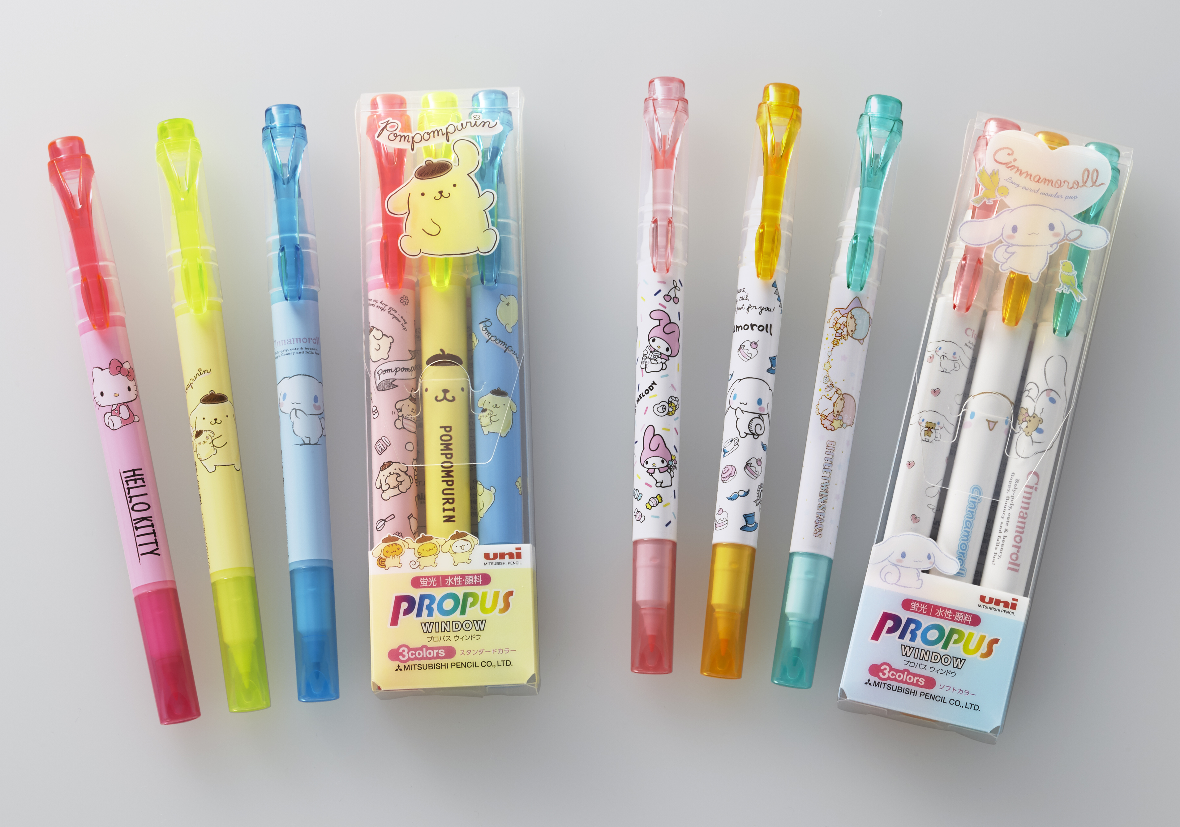 このたびサンリオキャラクターと初めてコラボレーションした『プロパス・ウインドウ サンリオキャラクターズ』は、軸の柄に、2018年サンリオキャラクター大賞1位のシナモロール、2位のポムポムプリンなど、サンリオの人気キャラクターを採用しております。