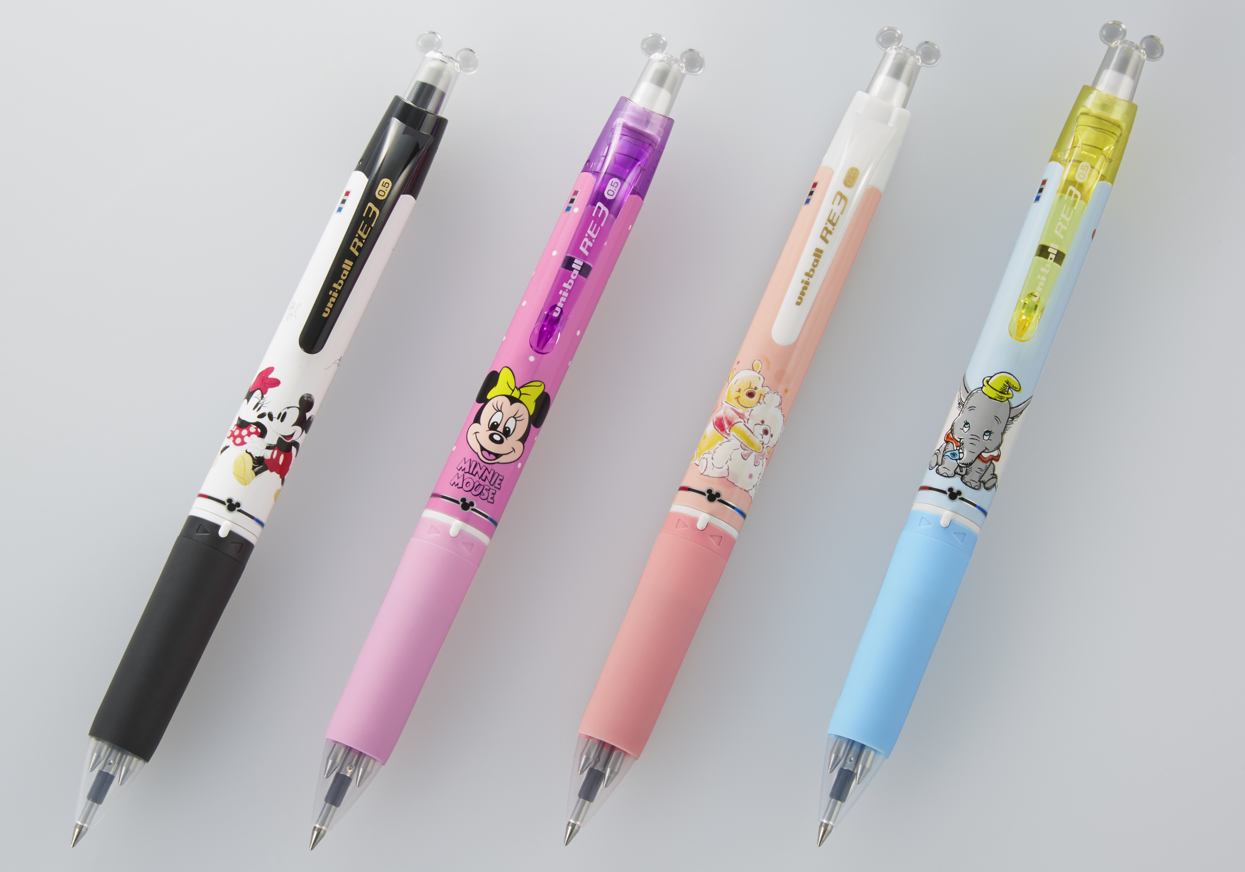 三菱鉛筆株式会社(本社:東京都品川区 社長:数原英一郎)は、消せるインクを搭載し、“スリムなのに、インクたっぷり”の消せる3色ボールペン『ユニボール R:E 3(アールイー スリー)』に、話題のディズニーキャラクターを描いたデザインの『ユニボール R:E 3 ディズニーシリーズ』(本体価格:600円+税/インク色:ブラック、レッド、ブルー/全4種)を、3月14日(木)に数量限定発売いたします。