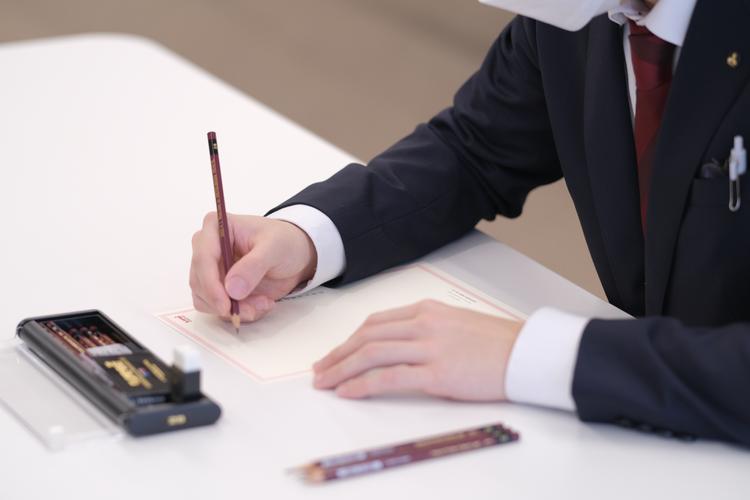 『鉛筆けずり入社式』は、昭和33年(1958年)に発売した“世界に誇れる国産鉛筆”「uni」が50周年を迎えた、2008年に始まりました。新入社員が今後深く関わっていく筆記具に、より愛着を持つようにという願いのもと、入社時の初心を手書きで表明するという当社の恒例行事となっています。