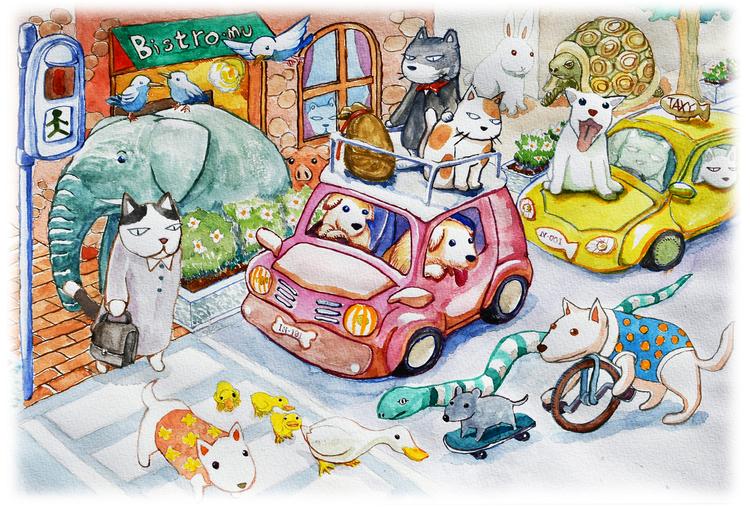 本間 慶一さん作 「動物安全自動車社会」