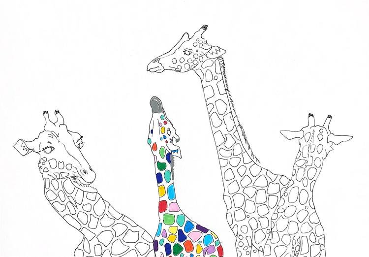 この作品は生まれ持ったカラフルな模様を持つキリンは他のキリンとは違うけれど、とても美しく輝かしい所を表現しました。