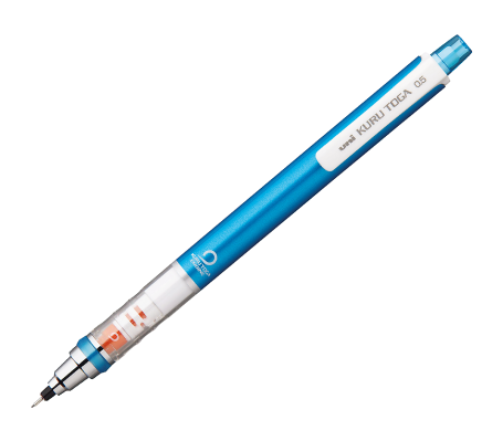 シャープペンシルの芯先に初めて注目し、開発した機構「クルトガエンジン」を搭載した商品です。芯がだんだん斜めに摩耗する「偏減り」により、文字が太くなる・芯が折れやすい・崩れた芯で紙面が汚れやすいなどの従来のシャープペンシルの問題を解決するために、芯自体を回転させる機構を開発しました。