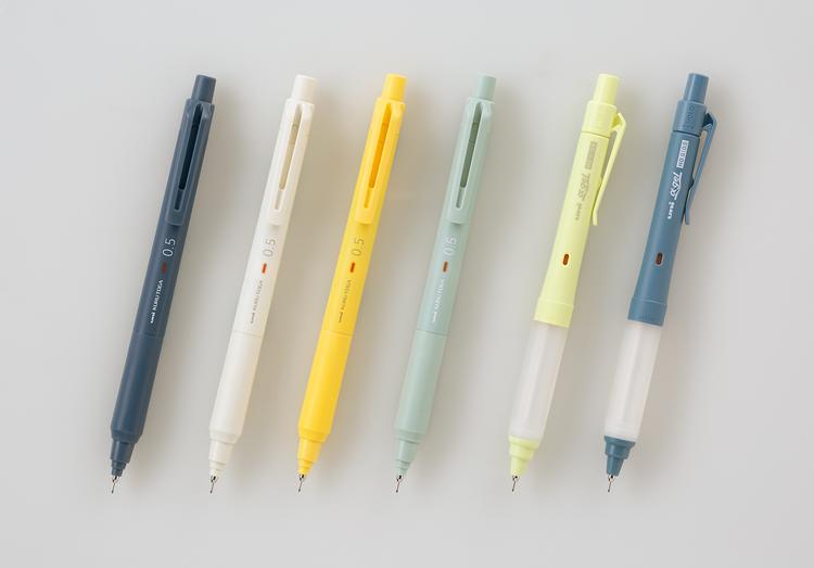 このたび、「クルトガエンジン」搭載の中でも長時間の筆記に適した『クルトガ KSモデル』と『ユニ アルファゲル スイッチ』の新たな軸色をラインアップいたしました。どんなシーンでも使いやすく小物にも合わせやすいスタンダードなカラーを採用した新軸色(継続)と、前向きさや自分らしさをテーマに、カラフルでありながらも日常に溶け込む新軸色(数量限定)を発売いたします。