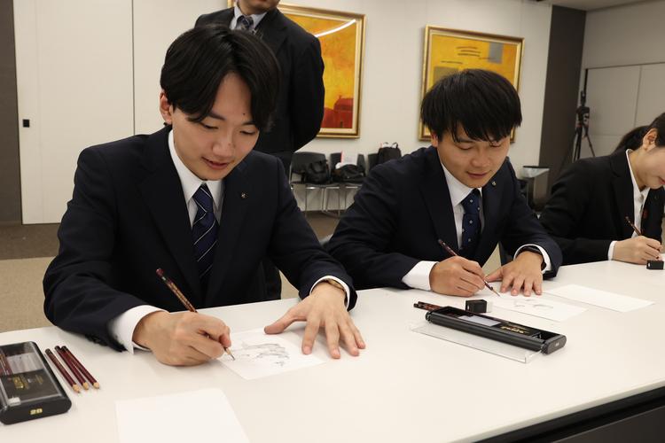 三菱鉛筆株式会社(本社:東京都品川区 社長:数原滋彦)は、4月1日(火)に、本社にて第18回『鉛筆けずり入社式』を実施いたしました。  『鉛筆けずり入社式』では、2025年度入社の新入社員が、創業の原点である「鉛筆」を先輩社員に教わりながら小刀でけずりました。新入社員には、「2025.4.1 Welcome to Mitsubishi Pencil」と名入れされている鉛筆「uni(ユニ)」が1ダースずつ配られました。