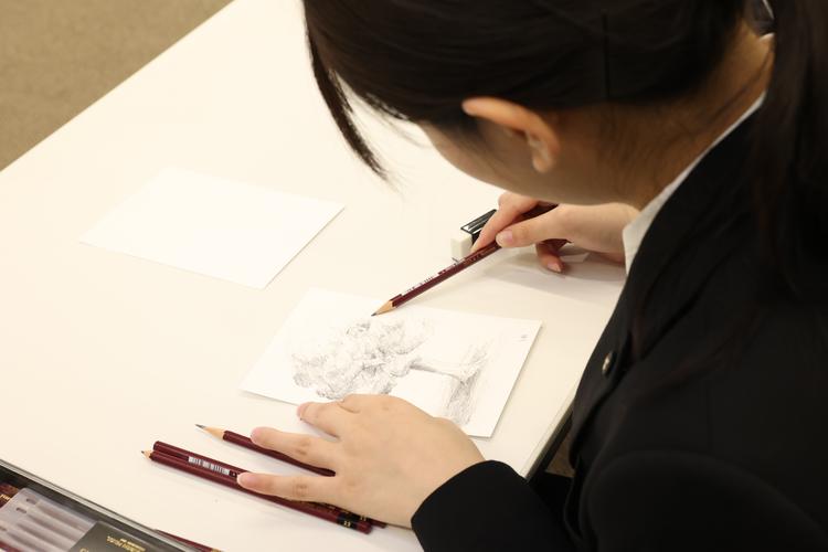 新入社員が自分でけずった鉛筆を使い、“樹”のデッサンを行います。