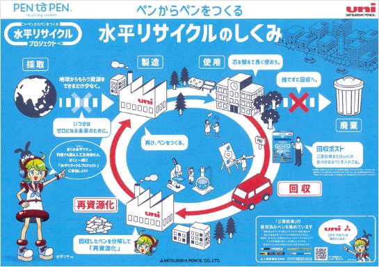製ペンを原材料とするペンの製造、ならびにこれによるCO2排出量削減に取り組んでいます。