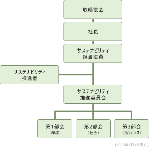当社は、取締役会の監督に基づき、サステナビリティ担当役員を議長としてサステナビリティ推進委員会を設置しています。