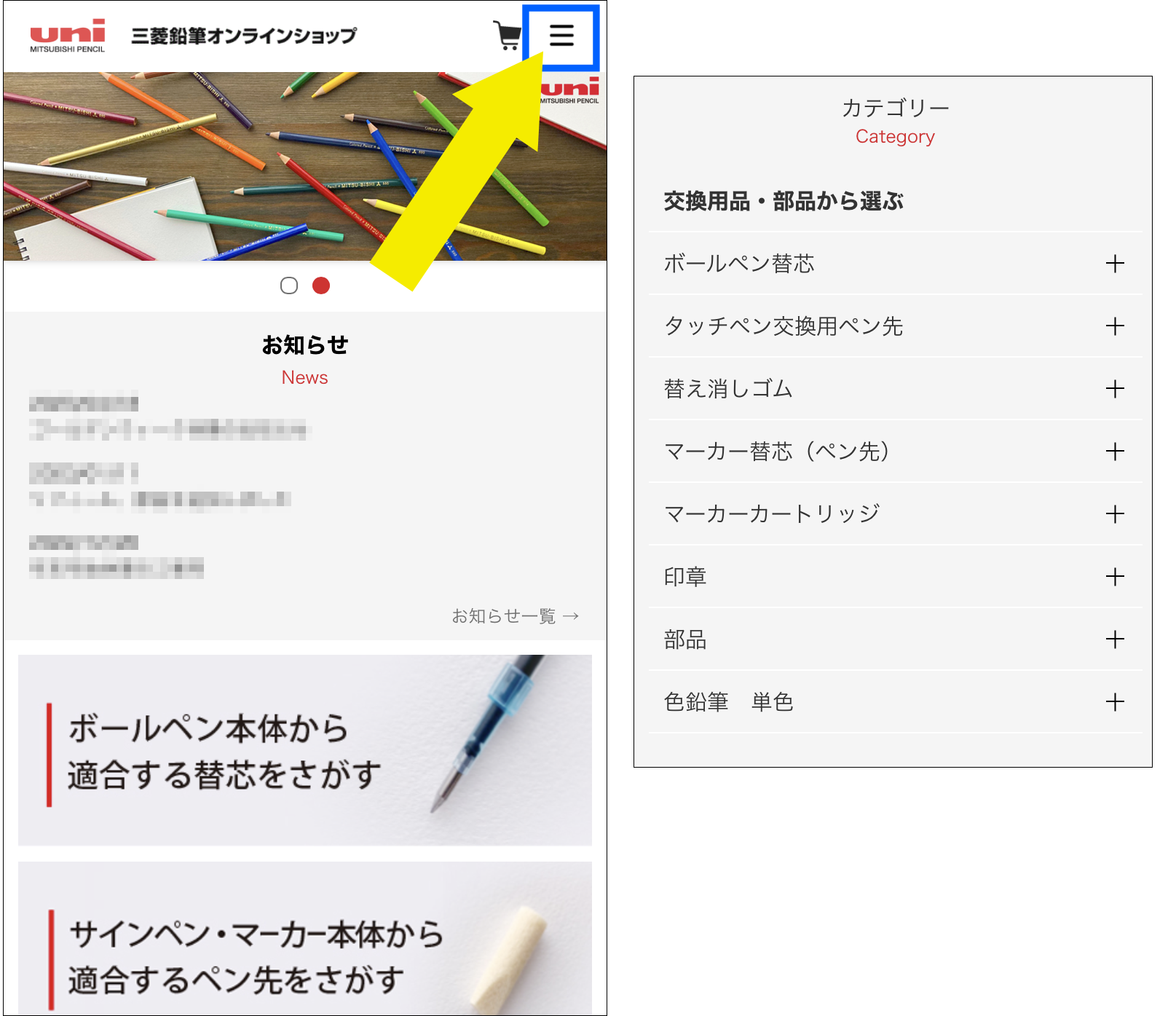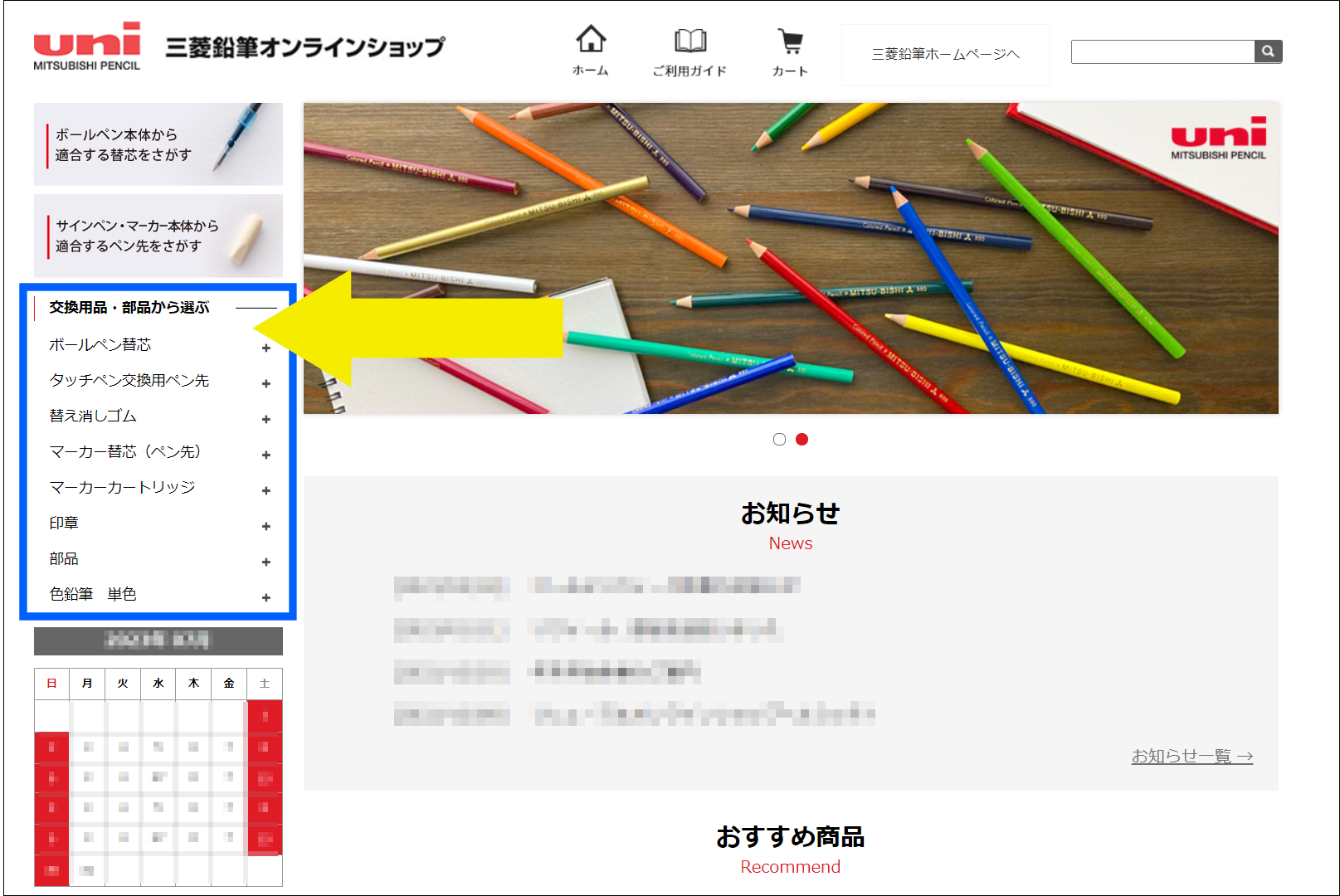 ※三菱鉛筆オンラインショップ 内の掲載場所