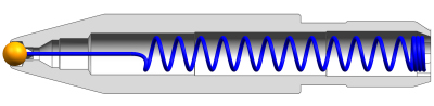 - シグノやジェットストリーム等、一部のボールペンには、ペンの先にバネが内蔵されています。このバネは常にボールを押してペンの先端とボールの隙間をふさぎ、インクの漏れ出し・揮発・乾燥を防ぎます。書くときには、ボールが押されてバネが縮み、隙間からインクが流れ出ます。そのため、ボールが外れると、この「バネの端」が現れ「ペンの中に針金が入っていたかのように」見える場合があります。