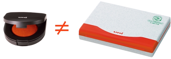 - 朱肉は印鑑(ハンコ)と、スタンプ台はゴム印との相性が良いように設計しています。