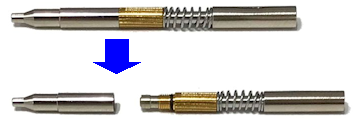 ※手順の図解は、こちら(別画面) MSXE3-3000用シャープ機構部でご説明しています。 - 芯を排出しても芯が出てこない場合は、新たにシャープ機構をお求めいただき、付け替えてください。