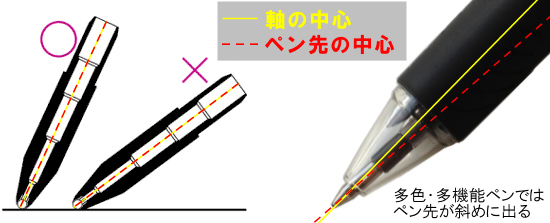 多色ペンのリフィルをしならせず、ペン先へまっすぐ繰り出す機構のことです。この機構により、単色ボールペンのような、しっかりとした筆記感を実現します。