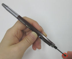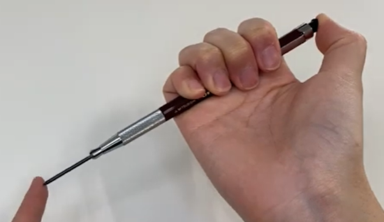 芯を少し長く出し、専用のシャープナーで削ります。 シャープナー(DPS-600)の詳細は総合カタログをご覧ください。