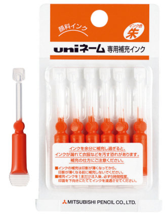 補充インクは、HUS-353朱をご利用ください。替芯の種類や交換方法、インクの補充方法は、こちらをクリックして各製品の「取扱い方法」をご覧ください。