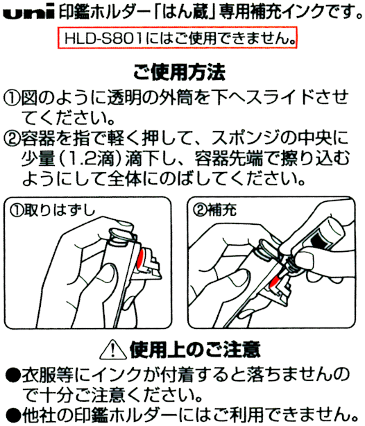 補充インクは、HUS-353朱、HUB-303をご利用ください。補充方法は、こちらをクリックしてください。