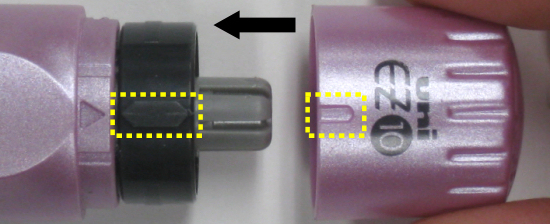 取り付けるときは、キャップとホルダーのマーク(黄色の四角)の位置を合わせます。
