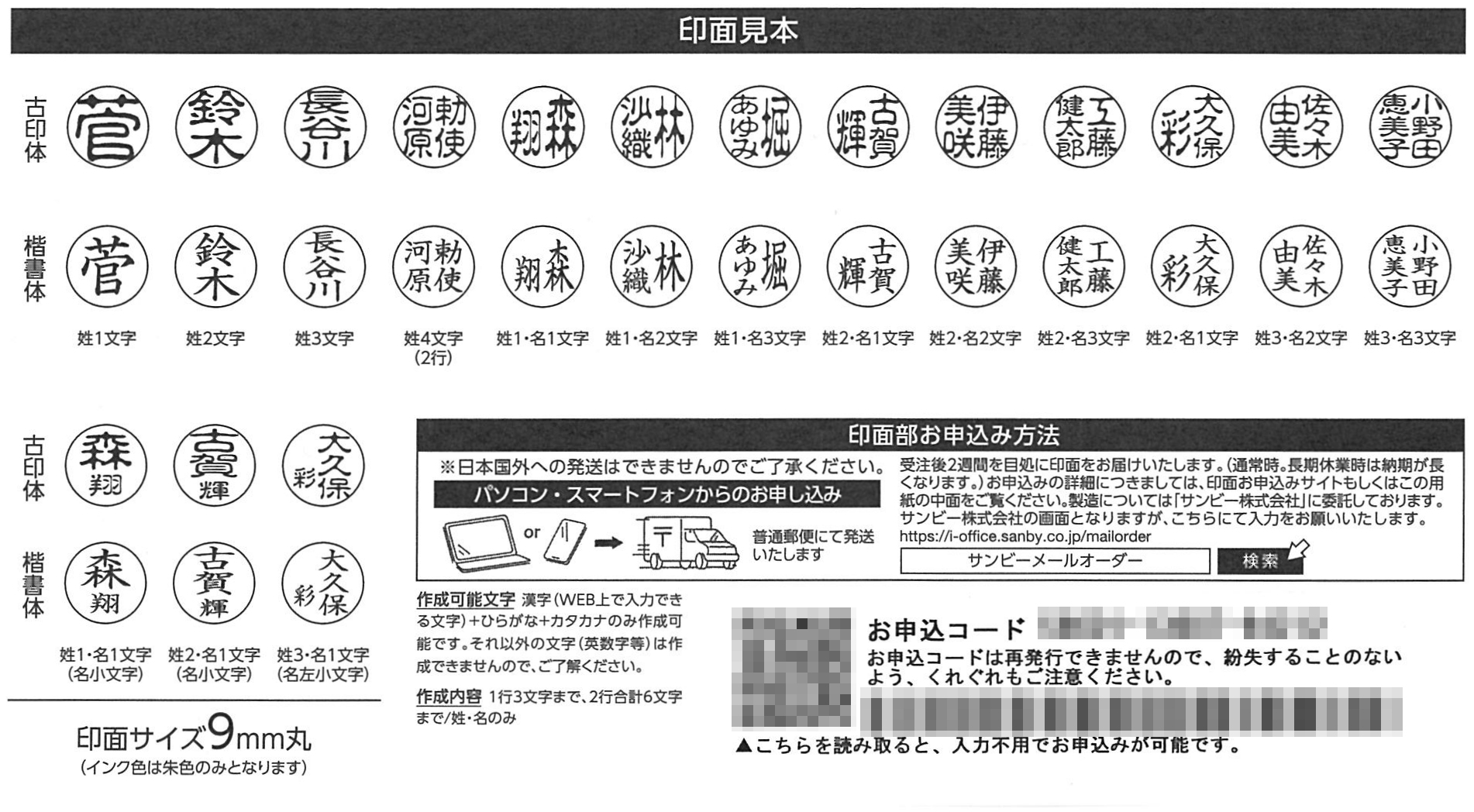 印面に入れられる文字を知りたい [印面注文用申込み用紙]