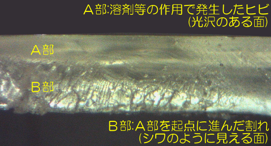 上の写真はプラスチックの軸でこの現象(ヒビから割れ)が生じた箇所を拡大したものです。