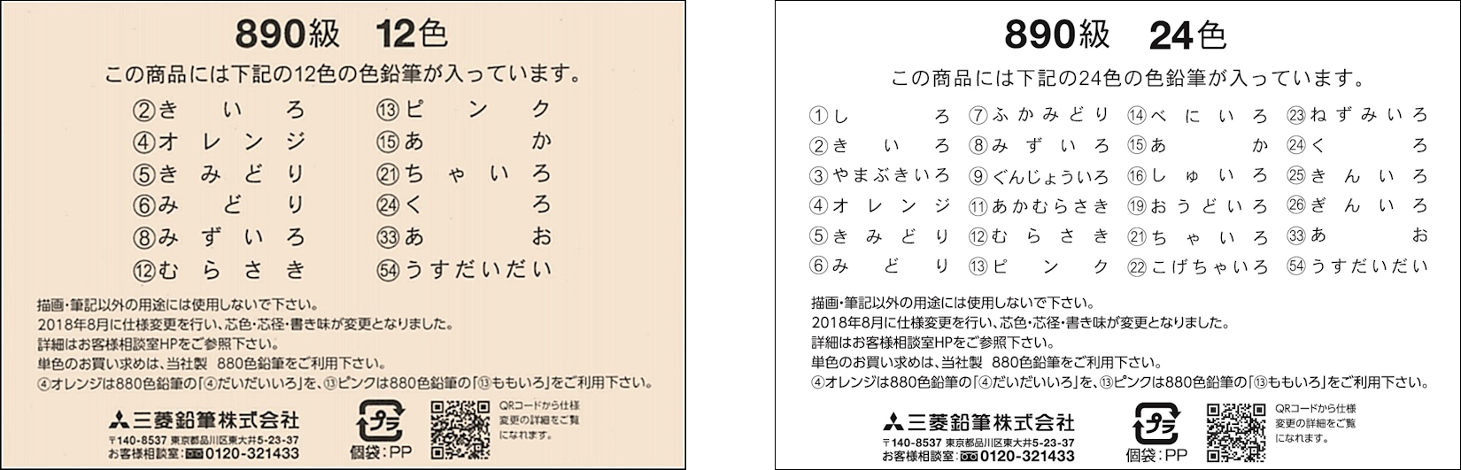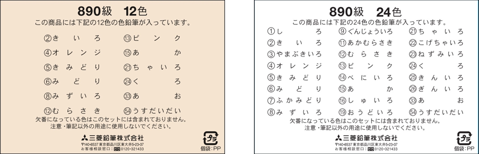 12色、24色のアソート品について(色鉛筆890)