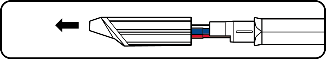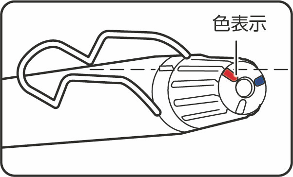後端の天面にある色表示がワイヤークリップの間でカチッと止まる位置まで、ダイヤルを回してください。図の場合は赤が繰り出されます。