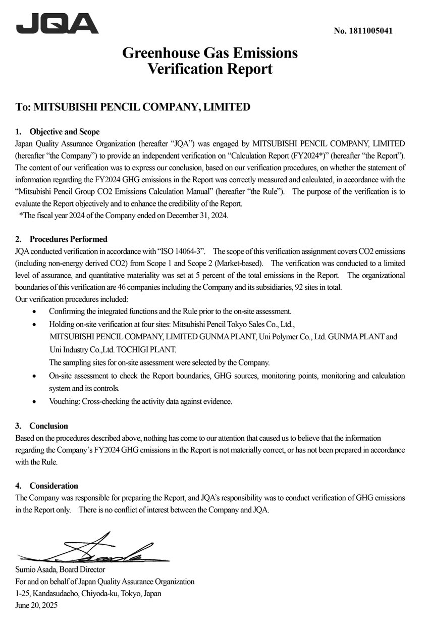Mitsubishi Pencil Group will work to reduce the environmental impact of its business activities throughout the entire supply chain.