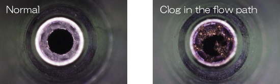 This clog may be ejected by test writing, but if the symptom recurs, try the following.