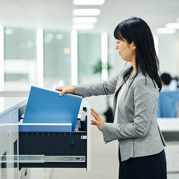 1997年に入社後、営業部 大阪百貨店グループに配属され、百貨店の店頭・外商部門で営業を学ぶ。1999年に印章事業部へ異動し、印章商品の企画開発から販促推進までを手掛ける。2000年に営業部 販社担当グループへ、2002年に営業部企画室へ異動し、得意先・販売会社向けの販売促進策の立案、運営を担当。2006年に念願の経理部へ異動。学生時代に学んだ簿記や税務の知識を活かし、日々数字と向き合っている。