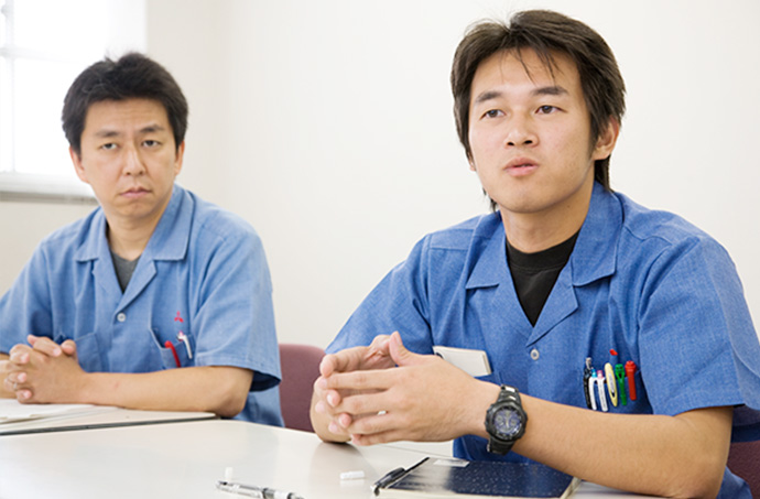 こうして決められたコンセプトをもとに、Iの手によって製品モデルの作成が進められる。実は彼にとって、製品の設計はこれが初めての経験だったという。「それこそ先輩たちに聞いたり、昔の図面を真似してみたりと、失敗をさせてもらいながら試行錯誤の連続。CAD(注:キャド、コンピューターを使用した設計システムのこと)の使い方など、この設計ですごく勉強させてもらいました。いちばん実のあるOJTでしたね。」