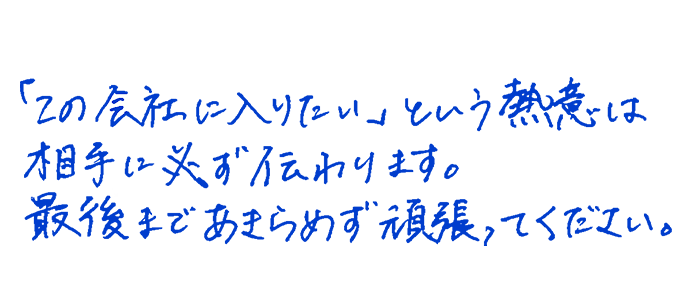 - 就職活動中の学生にひと言アドバイスをお願いします。