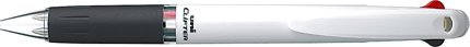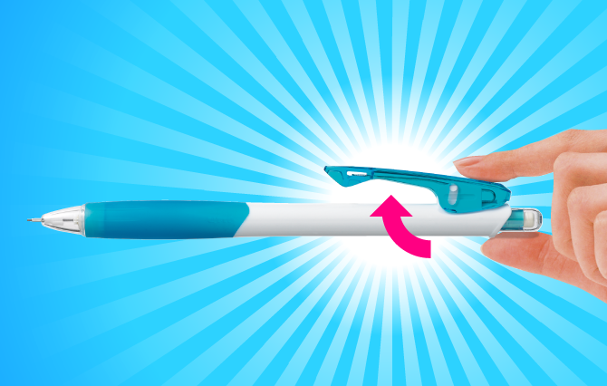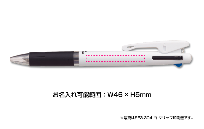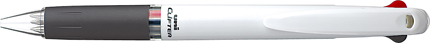 「支点スライドクリップ」搭載で、手帳やノート・書類の束など厚いものでもぴたっとホールドできるボールペンです。キュートなデザインの白×カラータイプは名入れが映えるためノベルティとしても好評です。