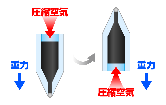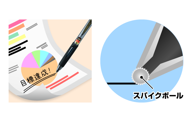 加圧ボールペン専用インクを圧縮空気で押し出すことで、トラブルの許されない筆記シーンをしっかりサポート。 屋外や立ち仕事など、あらゆる場面で機能を発揮します。