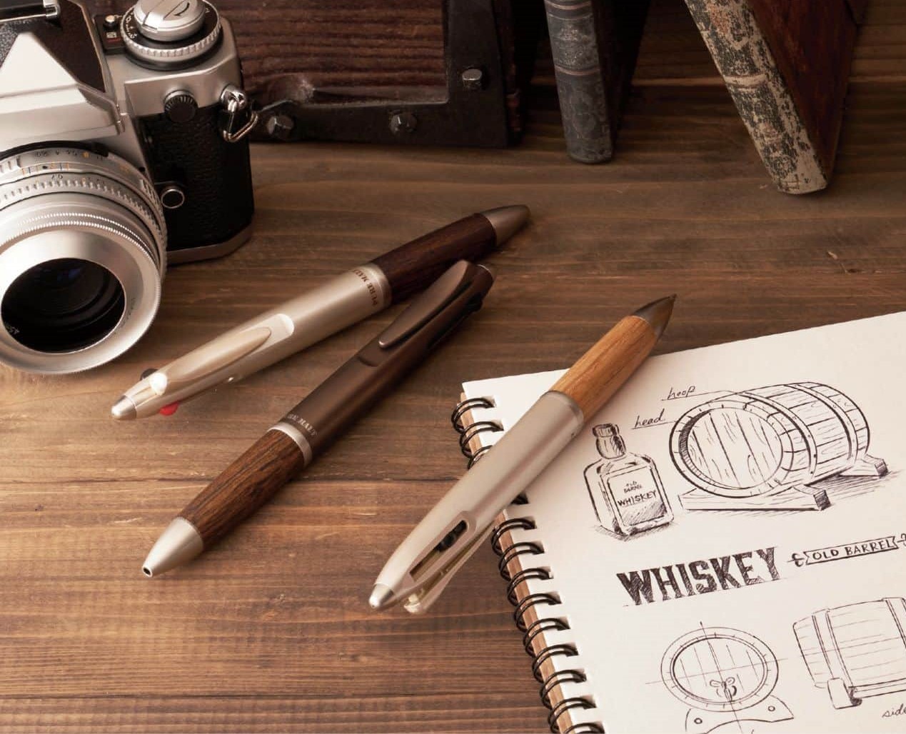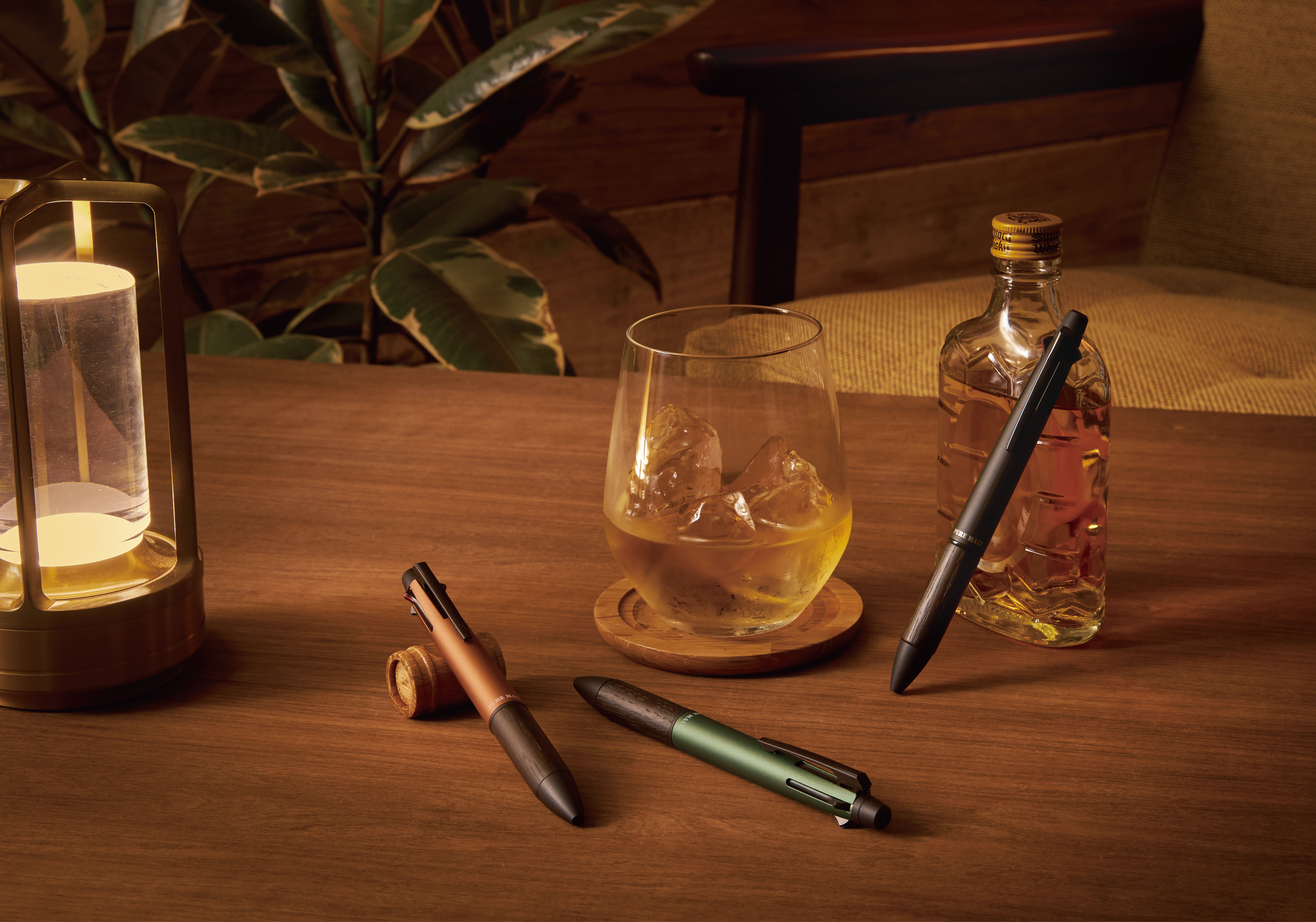 ウイスキーを熟成した樽材をペン軸に再利用した「ピュアモルト」シリーズの、“クセになる、なめらかな書き味。”の「ジェットストリーム」リフィル搭載モデルです。