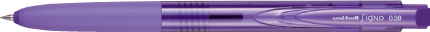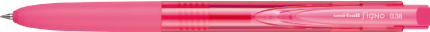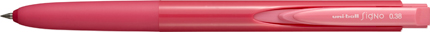 新配合のシグノインクとチップ先端の角をなくしたことで、ペン先と紙の摩擦抵抗を軽減し、なめらかな書き味を実現しています。グリップと軸のつなぎ目が目立たないワンモーションデザインです。 (ボール径: 0.28mm/0.38mm/0.5mm )