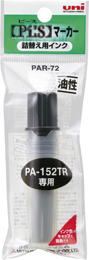 いろんな素材に筆記可能な油性マーカー。ソフトな書き味で、いやな音がしないPET繊維芯を採用。ストラップ用フックが転がりを防止します。