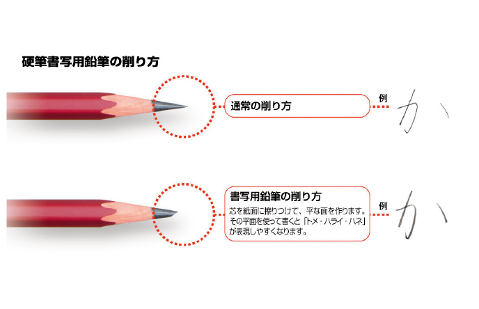 「トメ・ハネ・ハライ」等の筆タッチが表現できるので、文字の練習から本格的な硬筆書写にもぴったりです。