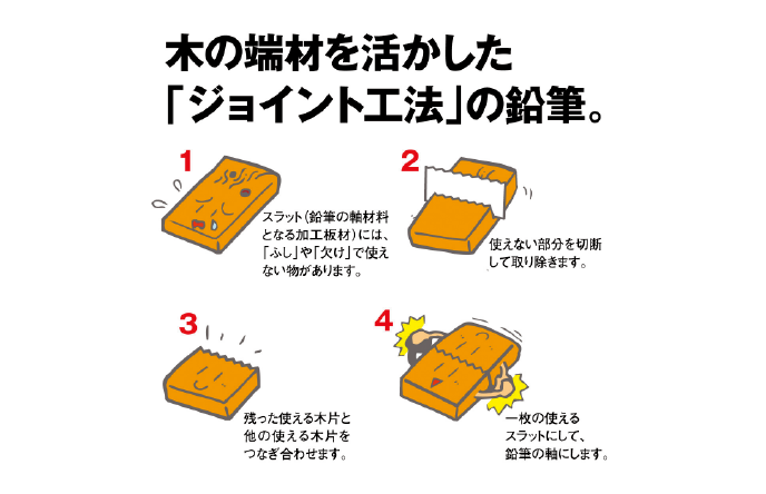 木の端材を活かした「ジョイント工法」の鉛筆