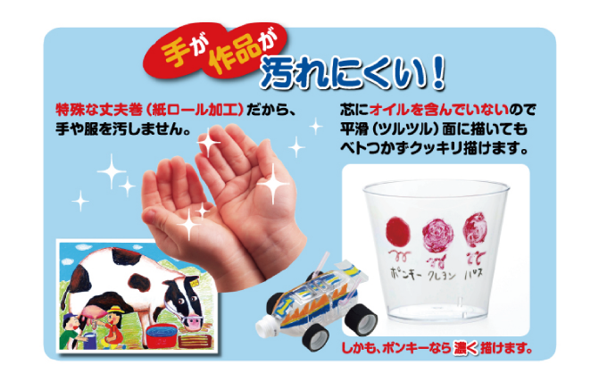 筆圧の強いお子様が思い切り描いても折れにくい強度を実現しました。