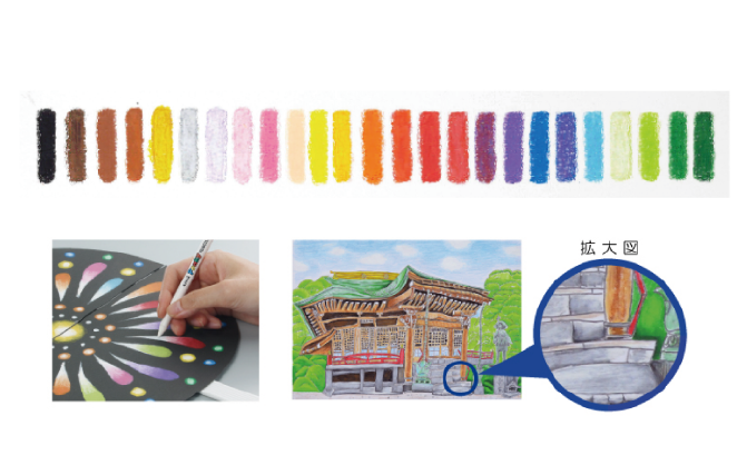 独特なしっとりソフトな描き心地と、一般色鉛筆にはない抜群の発色です。