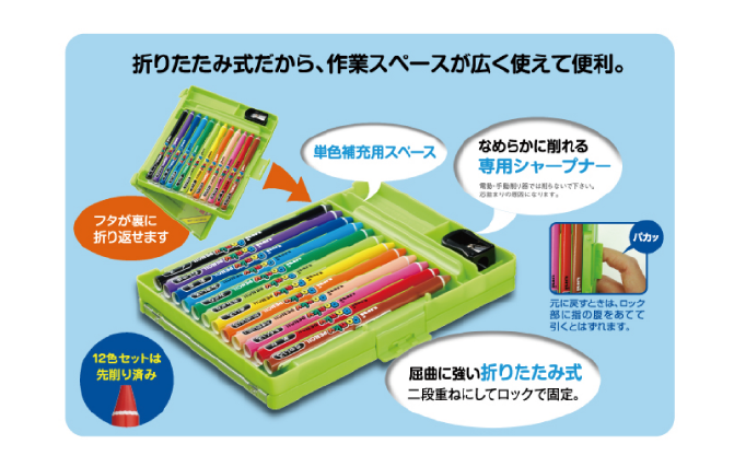既存の12色のラインナップに白色を加えることで、「さくらいろ」「はいいろ」など、お絵描きに頻繁に使われるカラーを自分で作ることができ、カラーバリエーションの幅が大きく広がります。