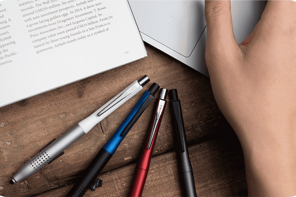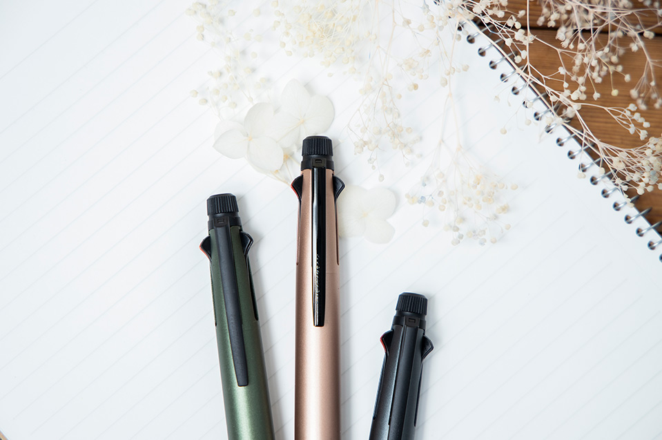抜群の書き味と“ちょうどいい上質感”を表現したデザイン。軸の質感を、マットやツヤでバリエーションを持たせ、ボーダーレスに選べるラインナップです。