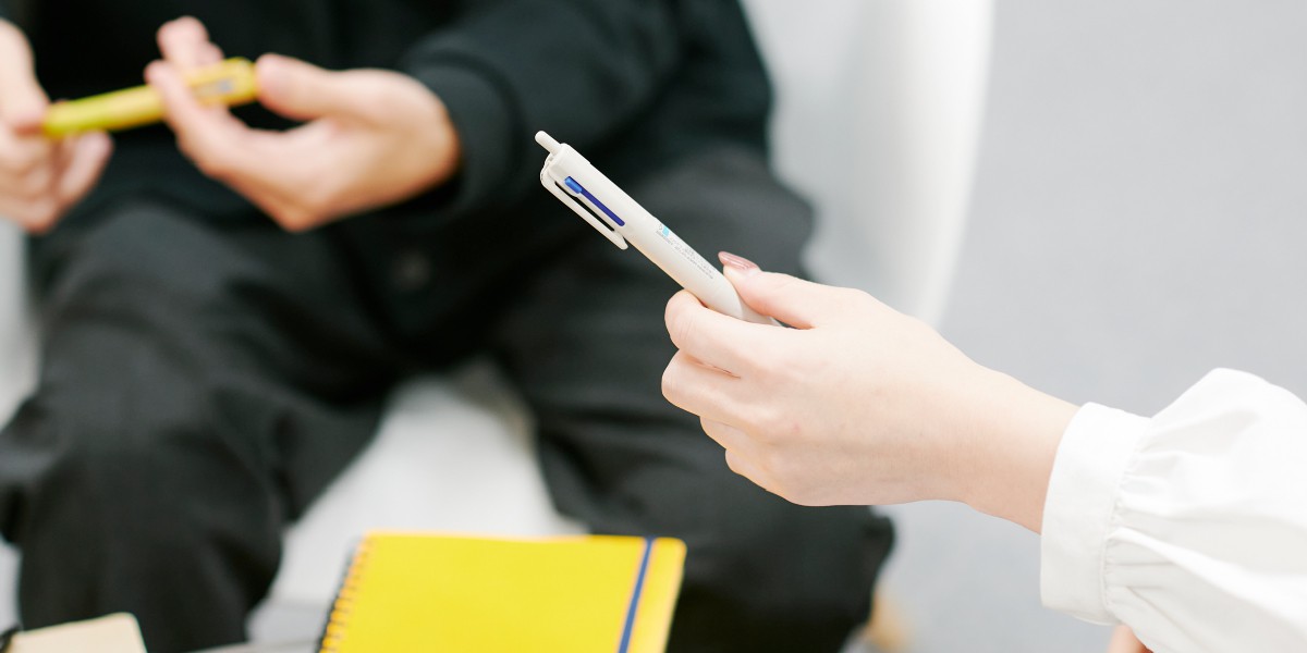 さくら:カラーリングも絶妙だよね。くすみカラーがいい感じで、使っているだけでテンション上がりました。会社で使うからこそ、1本は安心できる単色を、もう1本は見た目もかわいくて自分らしさも出せるものを選ぶとモチベーションが上がると思うな。気に入ったものは長く使いたいから、しっかり吟味して選ぶようにしています。