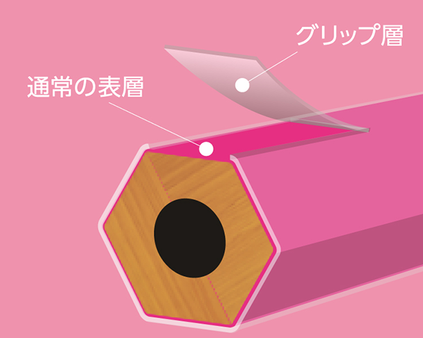 軸表面にすべりどめ加工をしているのでしっかり鉛筆が握れて、きれいな文字をかくことにもつながります。