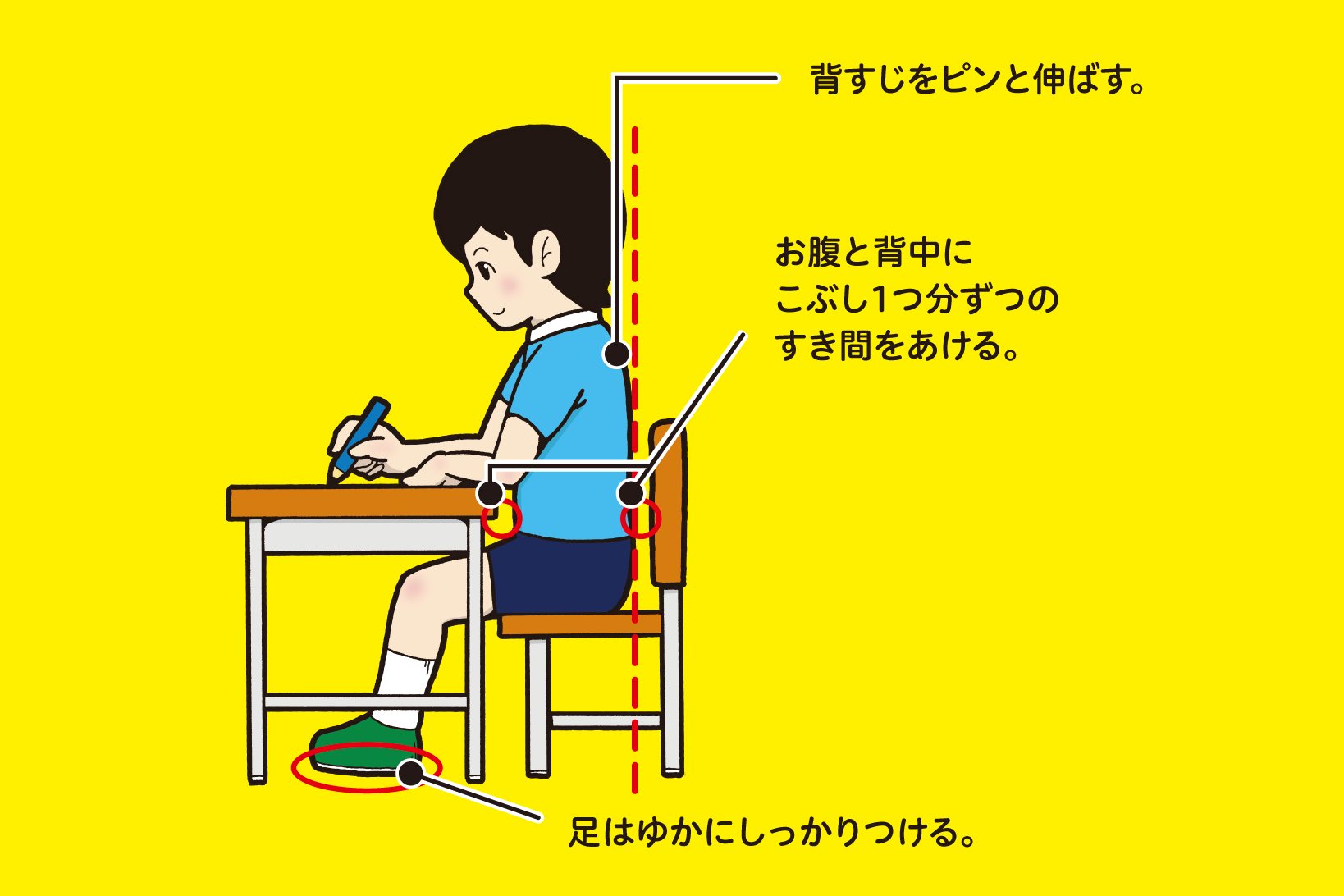 えんぴつの正しい持ち方・机に向かう正しい姿勢をイラストでやさしくご説明します。