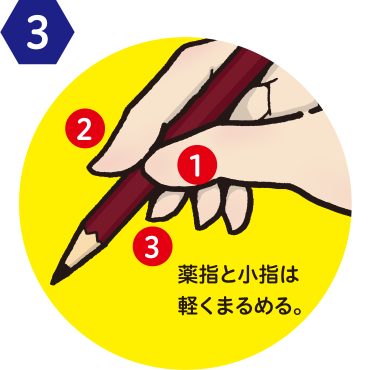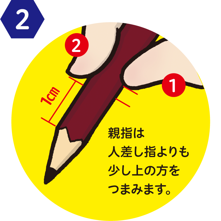 - 2人差し指をえんぴつにピッタリとそわせる。