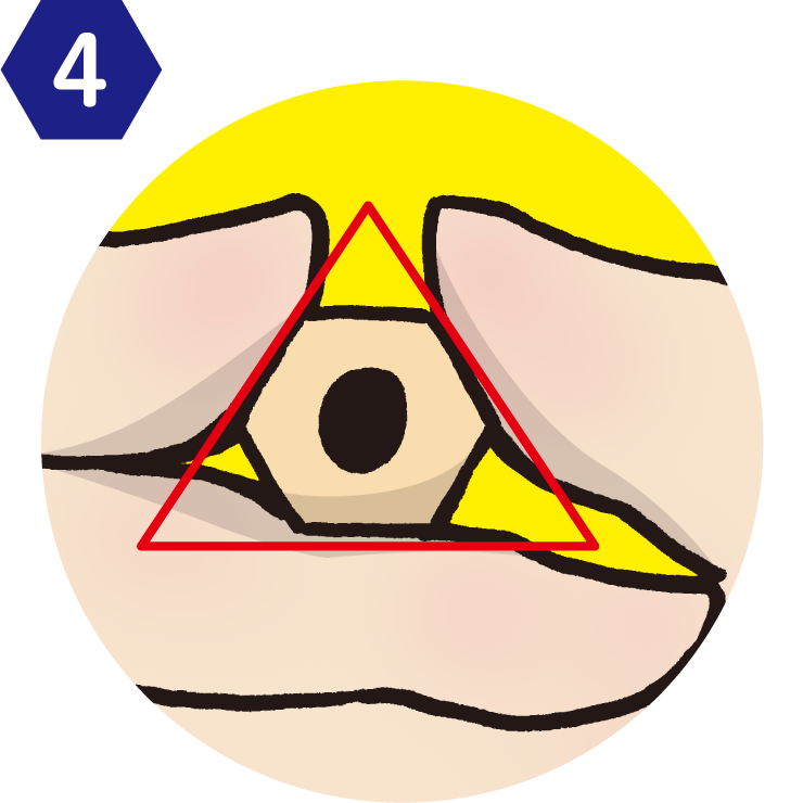 正しい持ち方が出来ていると、えんぴつの先端から見たときになだらかな三角形ができます。