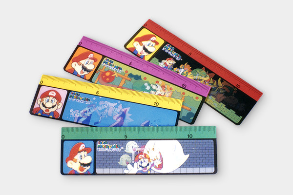 角度を変えるとマリオの絵柄が動いて見える、ステレオ印刷を施した12cm定規です。