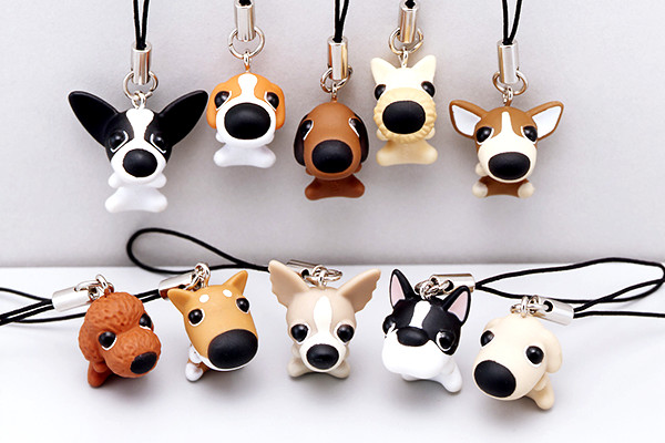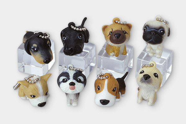 可愛らしい8種類(ミニチュアダックスフンド/ラブラドールレトリーバー/パグ/ウェルシュ・コーギー/シーズー/ビーグル/ゴールデンレトリーバー)の犬のミニフィギュア。頭が大きめなところが、とっても可愛いんです。あなたの携帯ストラップに。