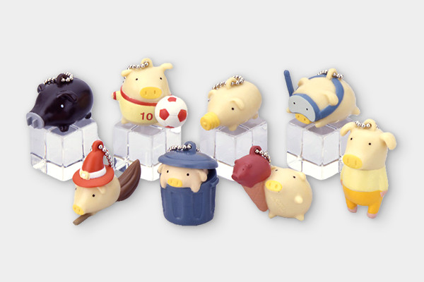 とってもユーモラスな8種類(ライトン/エリクトン/アダプター/ダストン/シュートン/チョコレートン/ダイブー/ウィッチハットン)のブタがモチーフのミニフィギュア。洒落のきいたネーミングに思わずにやけちゃう?